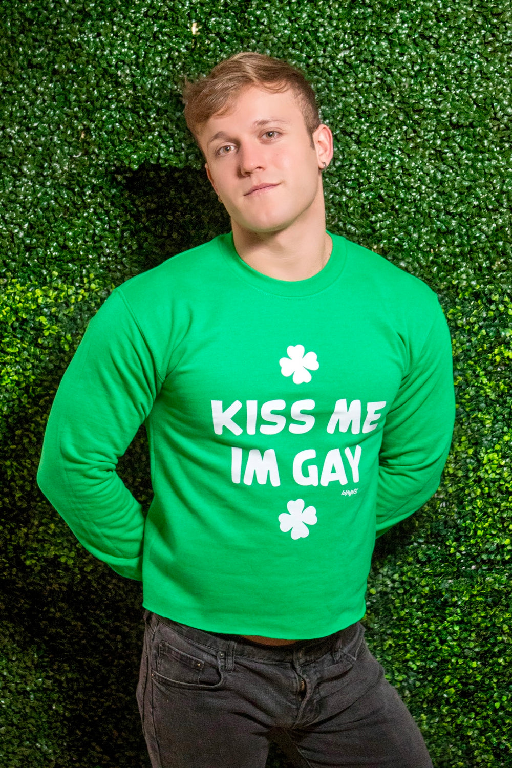Celebrate St. Patrick's Day with this bold and daring sweatshirt! Featuring a mid-crop design, this sweatshirt is perfect for taking risks and making a statement. And with the playful "Kiss Me I'm Gay" design, you'll be the life of the party! 🍀
