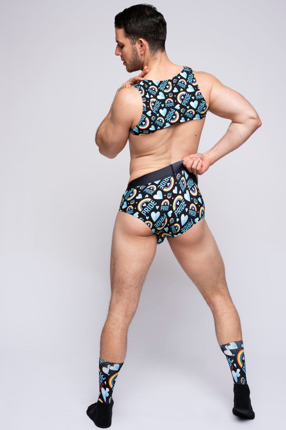 The perfect accessory to match your Prismatic Pride Briefs. This harness has a soft stretchy fabric to ensure your comfort. LET'S GET PRIDEFUL!